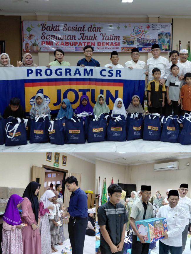 dutaswaranews.com | Kabupaten Bekasi – Palang Merah Indonesia (PMI) Kabupaten Bekasi bersama PT Jotun Indonesia menggelar kegiatan bakti sosial dan santunan bagi anak yatim di Aula PMI Kabupaten Bekasi, Selasa (10/3/2026). Kegiatan tersebut juga dirangkai dengan acara berbuka puasa bersama.