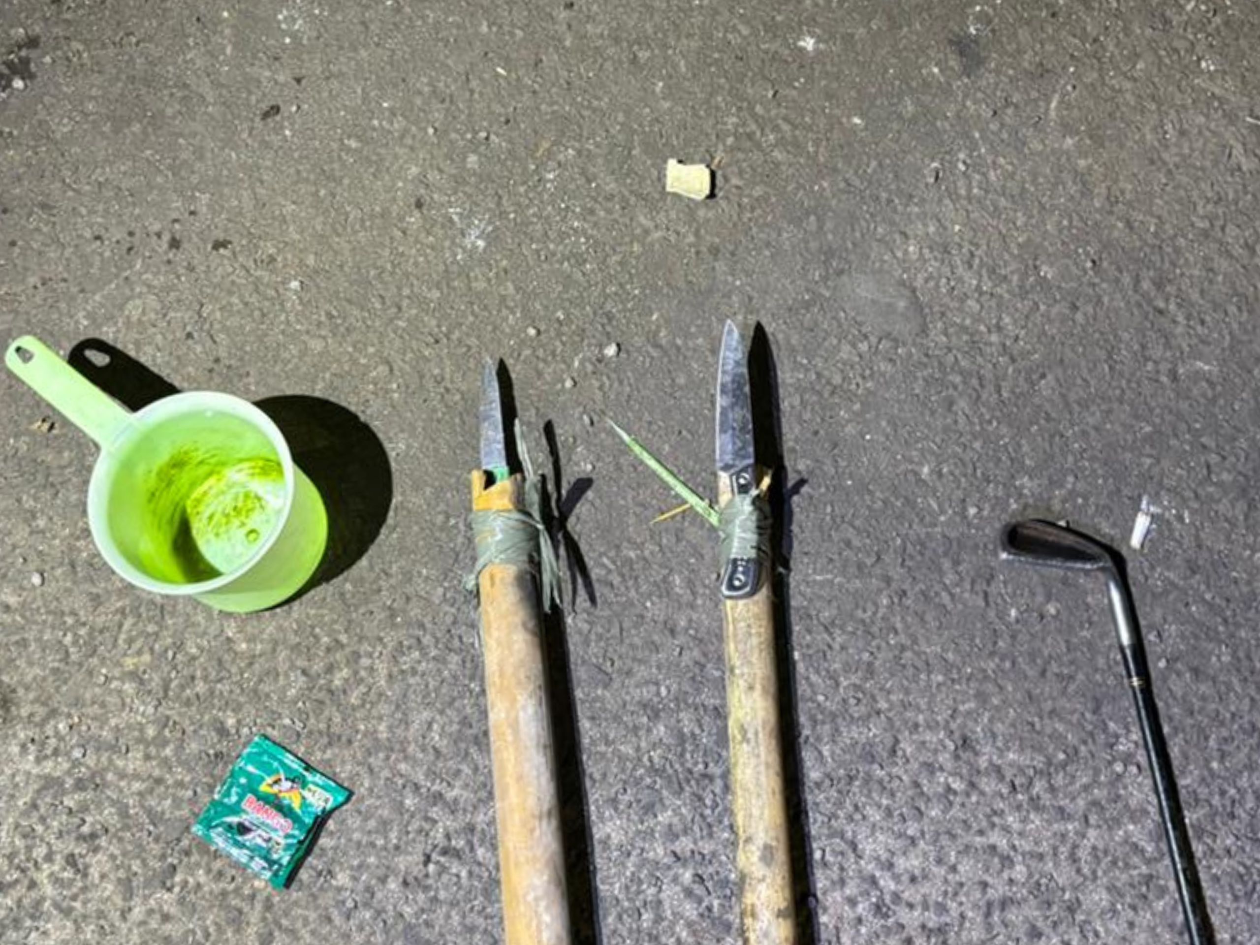 Petugas mencurigai sekumpulan pemuda yang tengah mengonsumsi minuman beralkohol di lokasi tersebut. Setelah dilakukan pemeriksaan intensif, petugas menemukan berbagai barang bukti yang diduga kuat akan digunakan dalam aksi tawuran, meliputi dua bilah tombak, satu tongkat golf, cairan cabai, serta satu unit kendaraan roda dua.