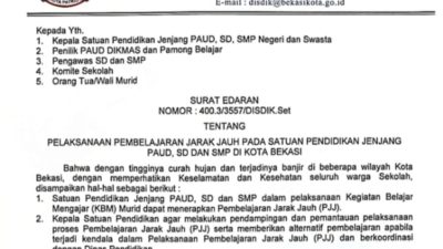 dutaswaranews.com, Kota Bekasi – Pemerintah Kota Bekasi melalui Dinas Pendidikan resmi mengeluarkan Surat Edaran Nomor…